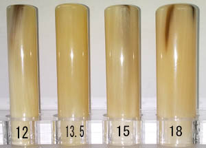 | 牛角色印材は、1本1本色合いが異なります ご来店いただいたお客様に限り、お好みの印材を選ぶことが出来ます |